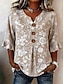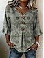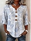 Pasqua Per donna Camicia Patchwork Bottoni Stampato Floreale Grafico Vintage Elegante Manica Lunga Scollo a V Top Regolari Casuale Quotidiano Ferie Blu Estate Primavera
