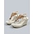 Eleganti sandali con zeppa color albicocca da donna - sandali con plateau e cinturino a T perlato con comoda suola in paglia, perfetti per crociere e feste in yacht. &abbigliamento da sera per
