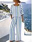 Per donna Set di Pantaloni Mezza Manica Girocollo Grafico A righe Stampato Moda Streetwear Casuale Quotidiano All'aperto Blu Grigio Primavera & Estate Vestibilità comoda