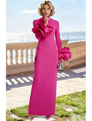 Abito da invitata di matrimonio a colonna di lunghezza fino al pavimento Abiti formali Abito da sera Abito per la madre della sposa a maniche lunghe scollatura alta elegante vintage formale con fiore