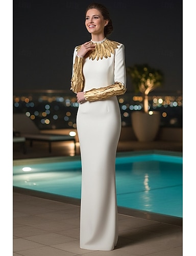 Abito formale a colonna aderente lunghezza al pavimento abito da sera abito da sera elegante vintage maniche lunghe collo alto festa serale matrimonio con piume
