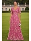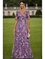 Tubino Colonna Lunghezza al pavimento Abito con Paillettes Abito da cerimonia per signora Manica Lunga Scollo a V Elegante Raso Con Paillettes con Fascia / Nastro