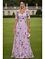Linea ad A Abito Lunghezza al pavimento Abito da invitata a nozze Abito Formale Abito da sera Abito da cerimonia per signora Manica Corta Girocollo Elegante Semplice Abbellito Formale Pizzo con Fiori
