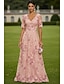 Linea ad A Abito Lunghezza al pavimento Abito in Pizzo Vestito da Festa Abito da Cocktail Abito da cerimonia per signora Mezza Manica Scollo a V Elegante Vintage Lussuoso Formale Ospite di nozze