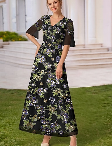 Linea ad A Abito Lunghezza alla caviglia Abito da Cocktail Abito da invitata a nozze Abito da cerimonia per signora Mezza Manica Scollo a V Elegante Casual Formale Ospite di nozze Derby del Kentucky
