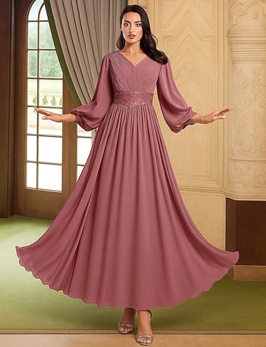 Abito lungo A-Line per ospiti di matrimonio abiti formali da sera abito da cerimonia per la madre della sposa con maniche lunghe scollo a V elegante vintage lussuoso con pieghe paillettes