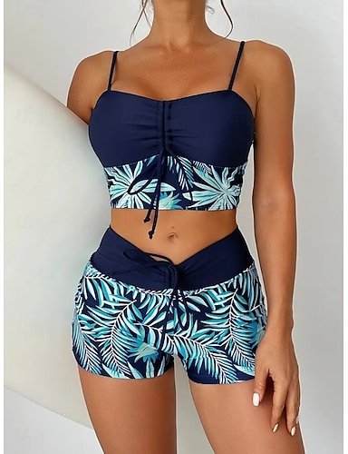 Per donna Costumi da bagno Bikini Due pezzi Shorts Costume da bagno Snello Senza schiena Vacanza Abbigliamento da Spiaggia Scollo a V Senza Maniche Costumi da bagno