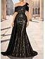 Sirena Tromba Lunghezza al pavimento Abito da Sera Da principessa Elegante Scintillante Setoso Senza Maniche Monospalla Matrimonio Formale Staccabile Raso Con Paillettes con Glitter Ricamo