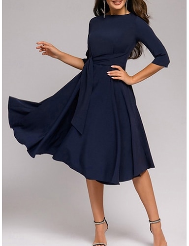 Per donna Abito Midi Abito aderente Abiti semi formali Ufficio Vestibilità regolare Semplice Mezza Manica Girocollo Nero Bianco Rosa Estate Primavera Autunno