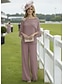 Due Pezzi Tuta Completo Pantalone Lunghezza al pavimento Abito da cerimonia per signora Mezza Manica Scollo a Barca Elegante Vintage Semplice Ospite di nozze Ferie Serata Formale Chiffon con