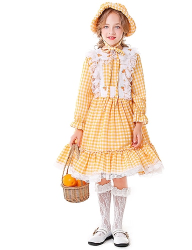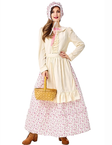 250° anniversario USA 19° secolo Abiti Abito da prateria Ragazza pioniera Coloniale Guerra rivoluzionaria Costume Per donna Carnevale Mascherata 4 luglio Adulti Vestito Grembiule Cappello