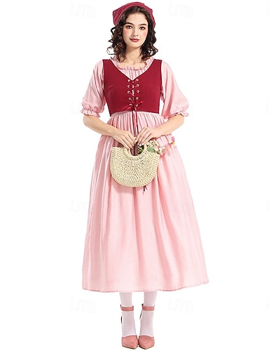 250° anniversario USA 19° secolo Abiti Abito da prateria Ragazza pioniera Coloniale Guerra rivoluzionaria Costume Per donna Carnevale Mascherata 4 luglio Adulti Vestito Grembiule Fascia