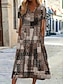 Per donna Abito Midi Abiti in cotone e lino Abito a Tubino Vestito Casual Moda Moderno Quotidiano All'aperto Vacanza Vestibilità comoda Geometrico Manica Corta Scollo a V Marrone Verde Estate