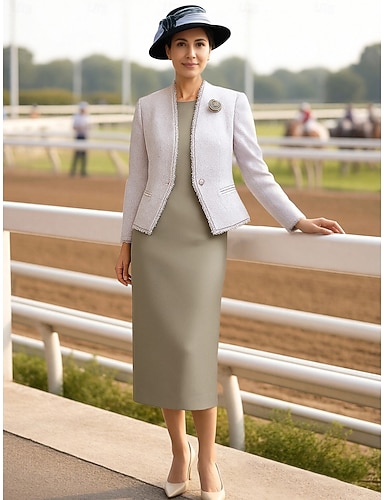 Due Pezzi Tubino Colonna Set di Abiti Lunghezza Tè Abito da invitata a nozze Abito da cerimonia per signora Senza Maniche Girocollo Elegante Su misura Formale Serata Formale Ricevimento di matrimonio