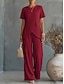 Per donna Blusa Set di Pantaloni Pantaloni a Gamba Larga Manica 3/4 Scollo a V Semplice Volant Moda Streetwear Quotidiano Casuale Quotidiano Ospite di nozze Rosa Viola Cachi Primavera & Autunno