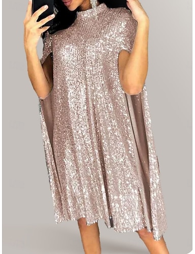 Per donna Mini Abito Abito a Tubino Festa cocktail Abiti semi formali All'aperto Feste Ospite di nozze Paillettes Vestibilità comoda Tinta unica Manica Lunga Dolcevita Argento Oro rosa Nero
