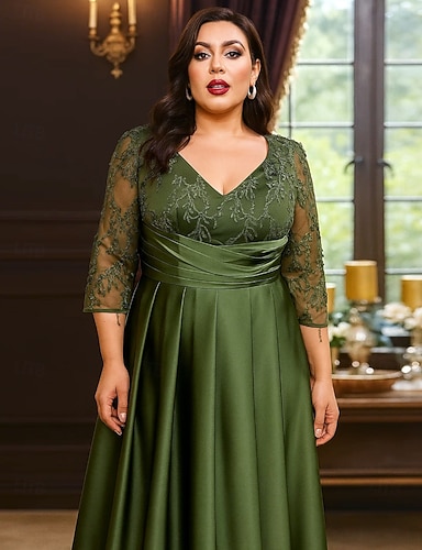 Abiti a-line plus size abito elegante abito curve abito formale da matrimonio lungo fino al pavimento maniche lunghe scollo a V con pieghe