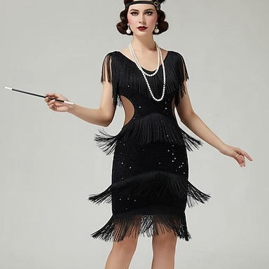 Anni Ruggenti Anni 1920 Lunghezza al ginocchio Abito Flapper Senza maniche Il grande Gatsby Ragazza Flapper Paillettes Frange Scollo a V Costume Per donna Natale Carnevale Mascherata Festa a tema
