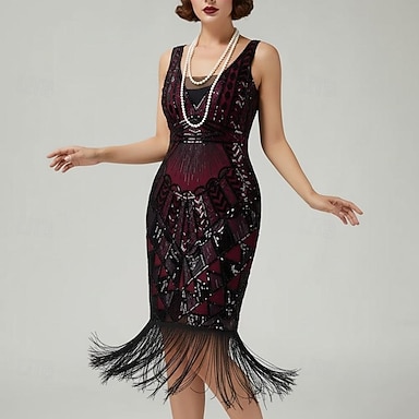 Anni Ruggenti Anni 1920 Lunghezza al ginocchio Abito Flapper Senza maniche Il grande Gatsby Paillettes Frange Scollo a V Costume Per donna Natale Carnevale Mascherata Festa a tema retrò Danza
