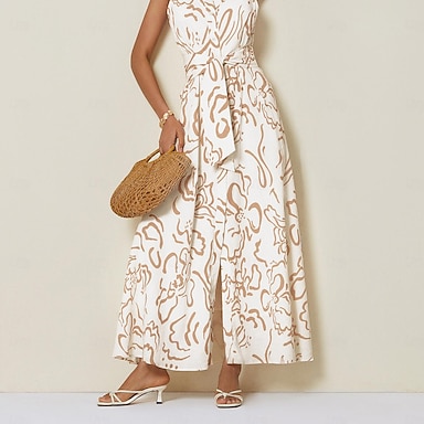 Per donna Abito Camicia Orlo Maxi Abito maxi Bianco Senza Maniche A Pois Tasca Cintura da annodare Estate Bavero Casual Quotidiano S M L