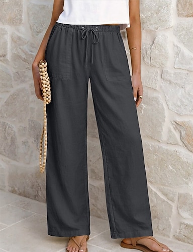 Per uomo Pantaloni di Lino Pantaloni Pantaloni Estivi Pantaloni Larghi Pantaloni da Spiaggia Coulisse Elastico in vita Gamba Dritta Semplice Confortevole Traspirante Lunghezza intera Quotidiano
