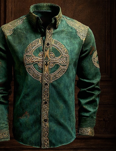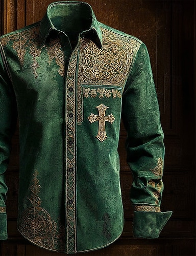 Camicia trifoglio con nastro moneta d'oro da uomo del giorno di San Patrizio Camicia in raso Camicia da abito Maniche lunghe Stile vintage retrò Festa Estate Primavera Colletto a risvolto Stampa 3D