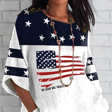 Camicia Donna Festa dell'Indipendenza Americana Bottoni Stampa Grafica Anniversario dell'America Vintage Elegante Moderna Maniche Lunghe Collo Camicia Tops Quotidiani Blu Bianco Estate Primavera