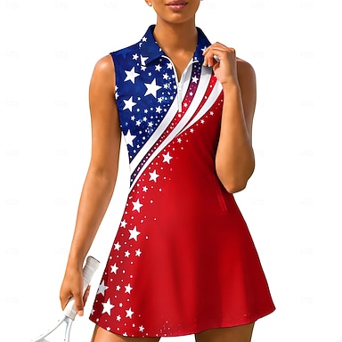 250° anniversario dell'America Giornata dell'indipendenza Per donna Sfumatura Stelle Abito da tennis Abito sportivo Senza Maniche Cerniera Stampato Traspirante Pallavolo Tennis Golf Colletto Colletto