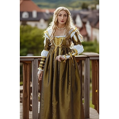 Medievale Rinascimento Vestito Abiti da Ballo Abito Vichingo Cavaliere Celtico Costume Per donna Reale Halloween Carnevale Mascherata Performance LARP Fiera Rinascimentale Adulti Vestito