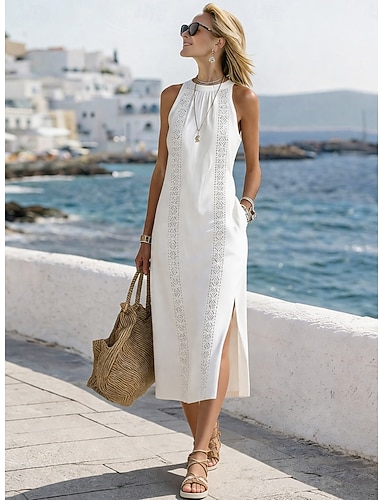 Per donna Abito maxi Abito in Pizzo Abito Bianco Vestito a ruota Elegante Moda Moderno All'aperto Spiaggia Vacanza Vestibilità regolare Semplice Senza Maniche Scollo a V Bianco Albicocca Estate