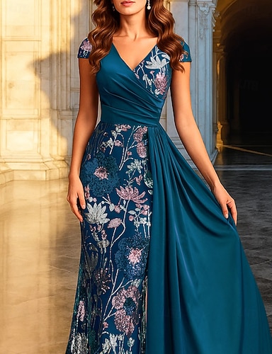 Tubino Colonna Lunghezza alla caviglia Abito da Ballo Vestito da Festa Abito da Cocktail Abito da cerimonia per signora Manica 3/4 Scollo a V Elegante Vintage Festa Cocktail party Serata Formale