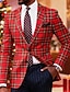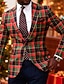 Per uomo Blazer Blazer di Natale Natale Affari Cocktail party Moda Casual Primavera Autunno Poliestere Plaid Tasca Bottoni Confortevole Monopetto Giacca Rosso scuro Rosso