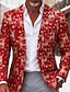 Per uomo Blazer Blazer di Natale Natale Affari Cocktail party Moda Casual Primavera Autunno Poliestere Fiocco di neve Cervo Tasca Bottoni Confortevole Monopetto Giacca Rosso