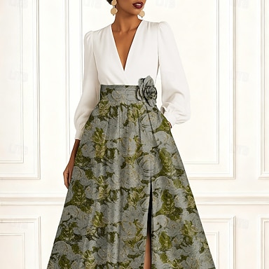 Due Pezzi Linea ad A Lunghezza alla caviglia Abito da invitata a nozze Abiti per invitati a matrimoni Elegante Quotidiano Manica Lunga Collo Alto Festa in giardino Matrimonio con Stampa floreale