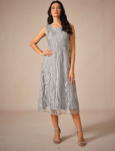 Per donna Abito al ginocchio Abito in Pizzo Elegante Ospite di nozze Data Vestibilità regolare Tinta unica Manica 3/4 Girocollo Grigio Estate