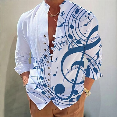 Per uomo Note Musicali Manica Lunga Collo ripiegato Affari Lavoro Abbigliamento da lavoro Uscire Bottoni Stampato Multi-tasche