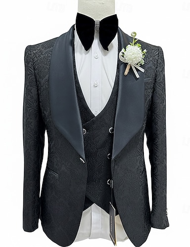 Uomo Smoking Abiti da sposo Matrimonio in Spiaggia Matrimonio primaverile Nero Primavera & Estate Tuta Bavero sciallato Festa Lusso Tinta unita Vestibilità su misura 3 pezzi Monopetto a un bottone
