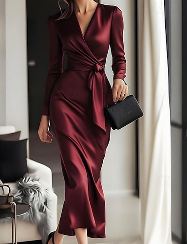 Sirena Tromba Tubino Colonna Lunghezza al pavimento Abiti da Ballo Abito da Sera Da principessa Abito formale Elegante Vintage Manica 3/4 Scollo a V Matrimonio Formale Raso Raso Elasticizzato Schiena