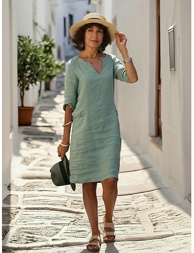 Per donna Abito al ginocchio Finto cotone e lino Abito a Tubino Vestito Casual Moderno All'aperto Vacanza Uscire Vestibilità regolare Semplice Manica 3/4 Scollo a V Rosa cipria Verde chiaro Arancione