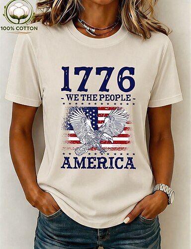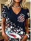 Giorno dell'Indipendenza Americana Per donna Maglietta Stampato Grafico Lettera Bandiera Americana Elegante Classico Casual Manica Corta Scollo a V Top Regolari Casuale Quotidiano Blu Nero Bianco