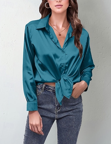 Per donna Camicia Elegant Top in raso Blusa Bottoni Semplice Elegante Vintage Manica Lunga Colletto a Camicia Top Regolari Ferie Uscire Giallo Rosso Blu Reale Verde smeraldo Rosa Estate Primavera