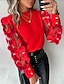 Pasqua Per donna Camicia Elegant Blusa Top Eleganti Pizzo Patchwork Floreale Attivo Elegante Manica Lunga Girocollo Top Regolari Quotidiano Ferie Uscire Blu Rosso / nero Nero Rosso Primavera Autunno