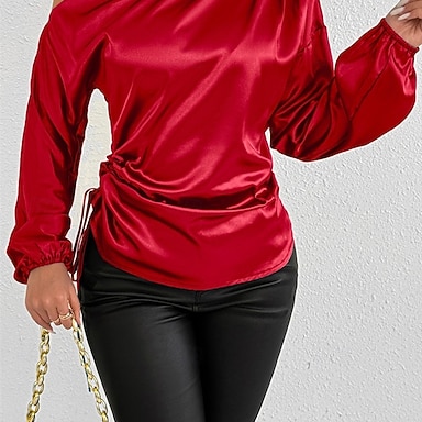 Per donna Camicia Elegant Elegante Top in raso Asimmetrico Tinta unica Elegante Casual Manica Lunga Top con spalle scoperte Top Regolari Quotidiano Uscire Blu Nero Rosa Verde Albicocca Primavera