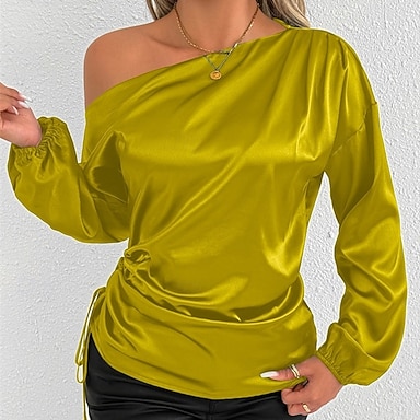 Per donna Camicia Elegant Elegante Top in raso Asimmetrico Semplice Elegante Casual Manica Lunga Top con spalle scoperte Top Regolari Quotidiano Uscire Nero Verde Primavera Autunno