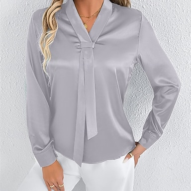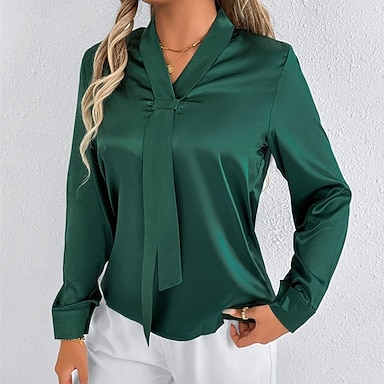 Per donna Camicia Elegant Top in raso Blusa Allacciato Semplice Elegante Manica Lunga Scollo a V Top Regolari Quotidiano Lavoro Ferie Nero Vino Verde Albicocca Estate Primavera Autunno