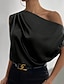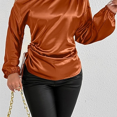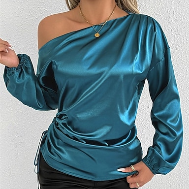 Per donna Camicia Elegant Elegante Top in raso Asimmetrico Semplice Elegante Essenziale Casual Manica Lunga Top con spalle scoperte Top Regolari Quotidiano Uscire Blu Nero Marrone Verde Estate