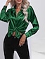 Per donna Camicia Elegant Top in raso Blusa Bottoni Semplice Elegante Manica Lunga Colletto a Camicia Top Regolari Ferie Uscire Blu Reale Verde Estate Primavera