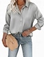 Per donna Camicia Elegant Elegante Top in raso Bottoni Tinta unica Essenziale Casual Manica Lunga Colletto a Camicia Top Regolari Quotidiano Bianco Verde Grigio Autunno Inverno