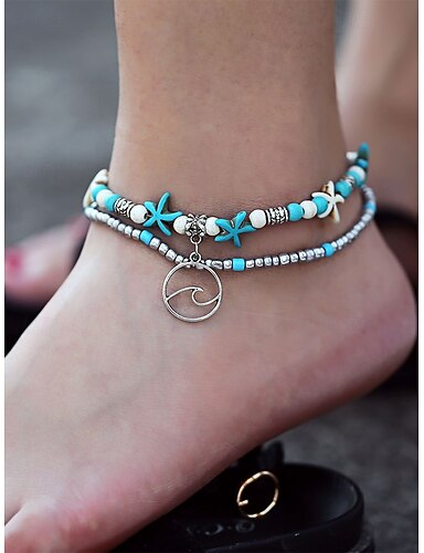 cavigliera con ciondolo a forma di stella marina e tartaruga in stile boho – braccialetto alla caviglia con perline a strati fatto a mano, gioielli da surfista da spiaggia per donne e ragazze, accessorio per i piedi per le vacanze estive