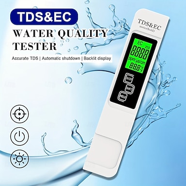tds 4 in 1 &tester dell'acqua EC, opzioni bicolore bianco/blu, lettura rapida retroilluminata, misurazione accurata 0-9999 ppm, avviso di colore per l'acqua potabile &uso in acquario